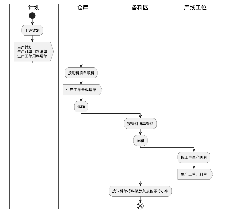 生产备料单的执行动作应当是在仓库到备料区这一段时间发生,第一期版本系统不干预此过程(2025-07-21)